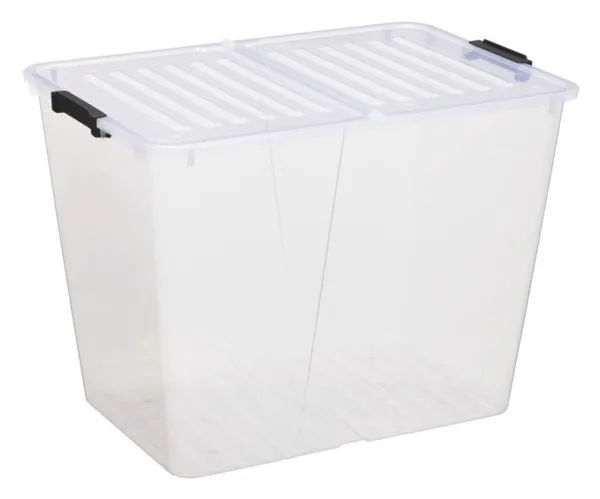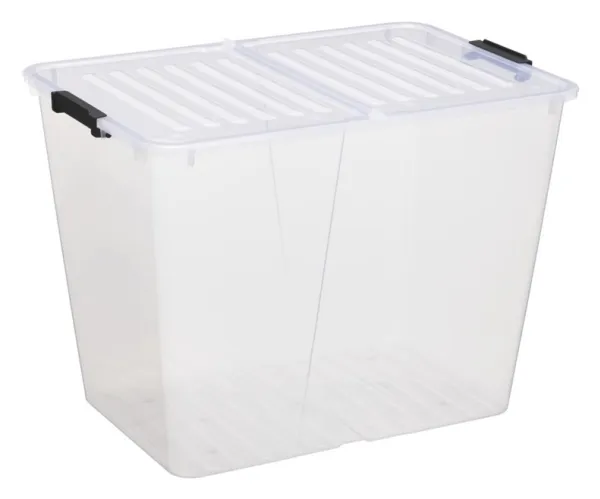 Product type- Storage boxes with lid. Brand- Plast Team. Length- 56.7 cm. Width- 39.6 cm. Height- 41.7 cm. Box capacity- 65 l. Colour- Transparent. Material- Plastic. Mandatory warranty- 24 mo.