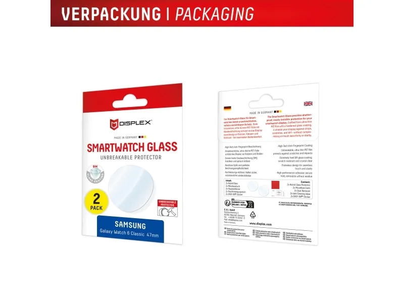 Displex 02152, Skjermbeskytter, Smartklokke, Gjennomsiktig, Samsung, Galaxy Watch 6 Classic (47mm), Herdet glass