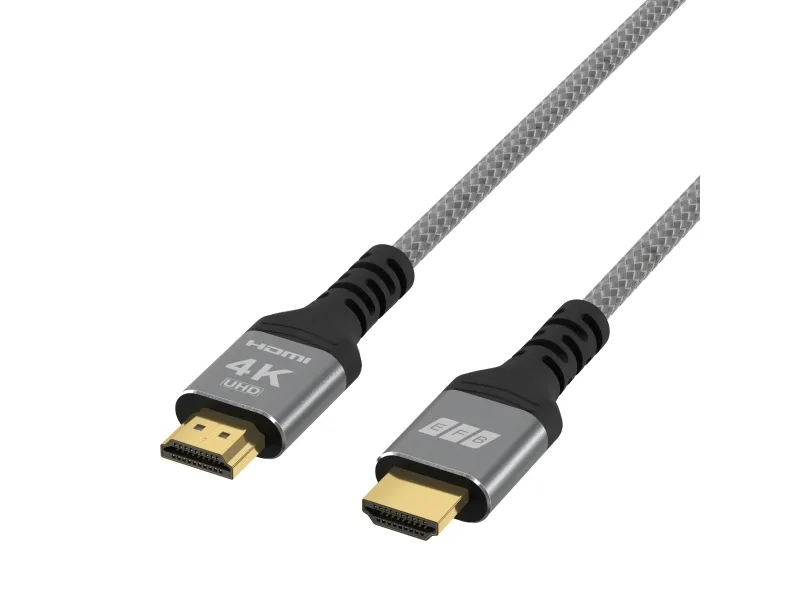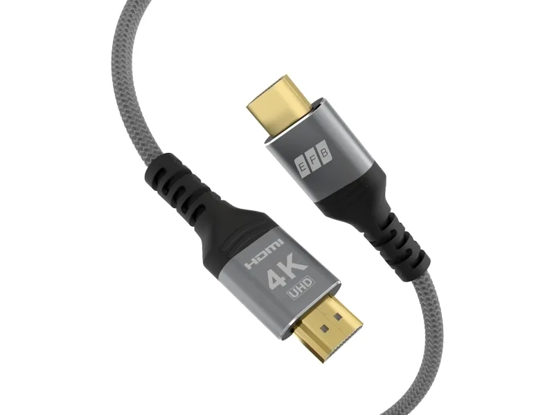 HDMI Cable 4K@60Hz – Premium Build with Eco Packaging for Professional AV Use This 4K HDMI cable is built for performance and sustainability. Featuring a pure copper conductor, aluminum housing, and a space-grey braided jacket, it delivers professional-grade quality for AV installations, conferencing, and commercial setups.EFB Elektronik HDMI-20-00005. Cable length: 5 m, Connector 1: HDMI Type A (Standard), Connector 1 gender: Male, Connector 2: HDMI Type A (Standard), Connector 2 gender: Male, Connector contacts plating: Gold, HDMI version: 2.0, 3D, Data transfer rate: 18 Gbit/s, Audio Return Channel (ARC), Product colour: Grey