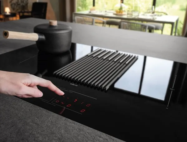 Elica NikolaTesla Libra EVO BL/A/83. Product colour: Black, Appliance placement: Built-in, Hob width size: 83 cm. Control type: Touch, Control position: Top front, Timer type: Digital. Maximum extraction power: 600 m³/h, Motor power: 160 W, Fan noise level (min): 38 dB. Connected load (electric): 7400 W, AC input voltage: 220 - 240 V. Width: 830 mm, Depth: 515 mm, Height: 210 mm