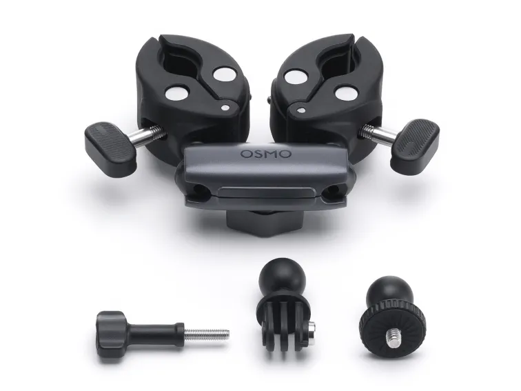 The DJI Osmo mounting system offers a robust solution for action camera enthusiasts looking to enhance filming capabilities. This kit includes a dual heavy-duty thumb screw and a mounting adapter, ensuring a secure and reliable connection. The design features a clamp mount system that firmly supports your action camera, allowing for versatile positioning and stability during dynamic shooting conditions. Stay focused on capturing visuals without worrying about the stability of your setup.