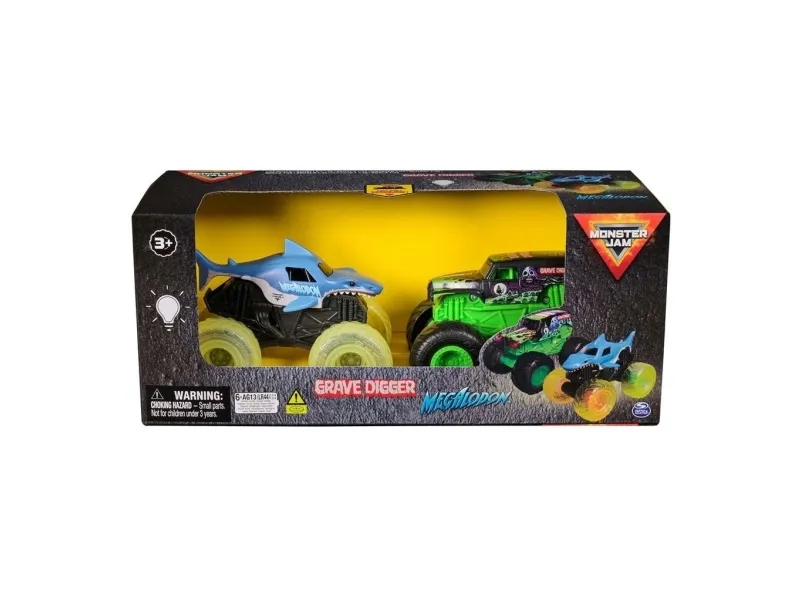 Grave Digger og Megalodon. Med lys og lyder.