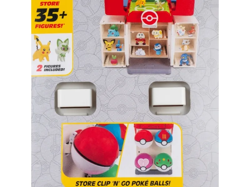 Dette fler-etagers sæt kan opbevare og udstille over 35+ 5 cm Battle Figures og har desuden plads bagpå til at holde fire Clip ‘N’ Go Poké Balls.