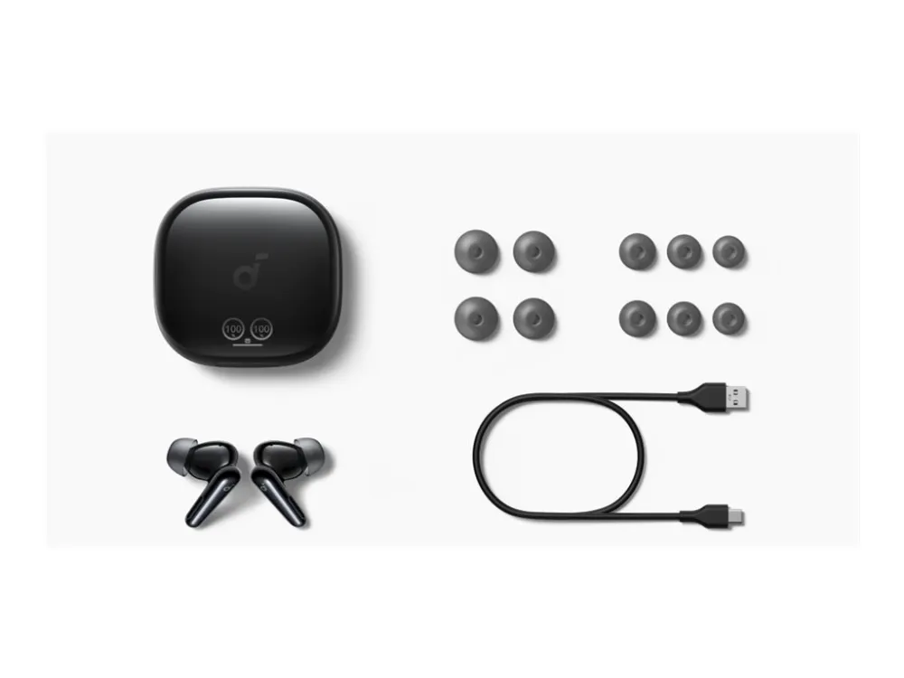 Soundcore Liberty 4 Pro - True wireless-hodetelefoner med mikrofon - i øret - Bluetooth - aktiv støydemping - glanset lyse svart