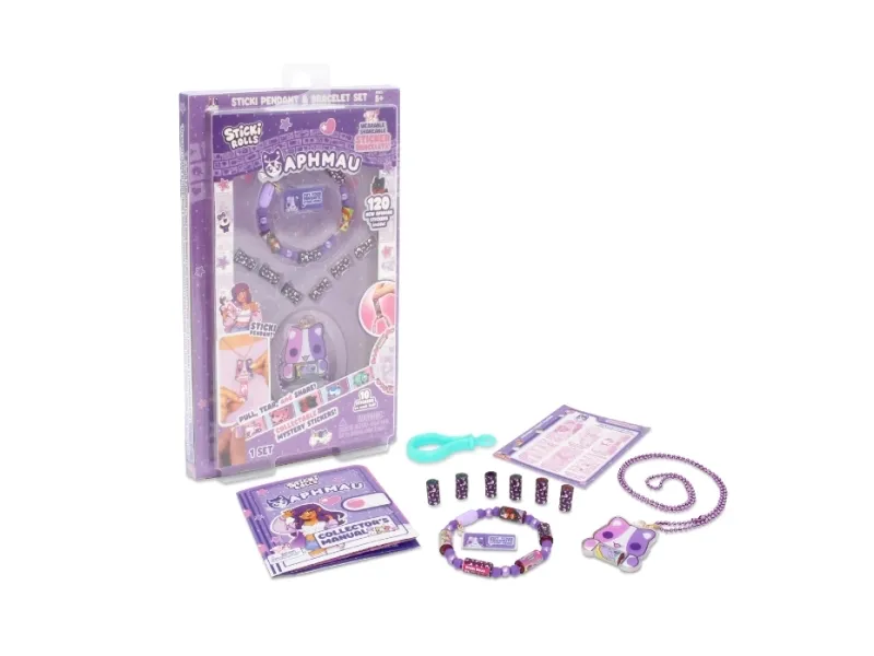 Præsenterer Sticki Rolls x Aphmau Pendant & Armbåndssæt– en magisk kombination af mode, kreativitet og klistermærke-sjov, som fans simpelthen ikke vil gå glip af! Dette limited edition-samarbejde bringer den superpopulære verden af Aphmau ind i Sticki-universet og forener samlerglæde med bærbar stil i et iøjnefaldende sæt.