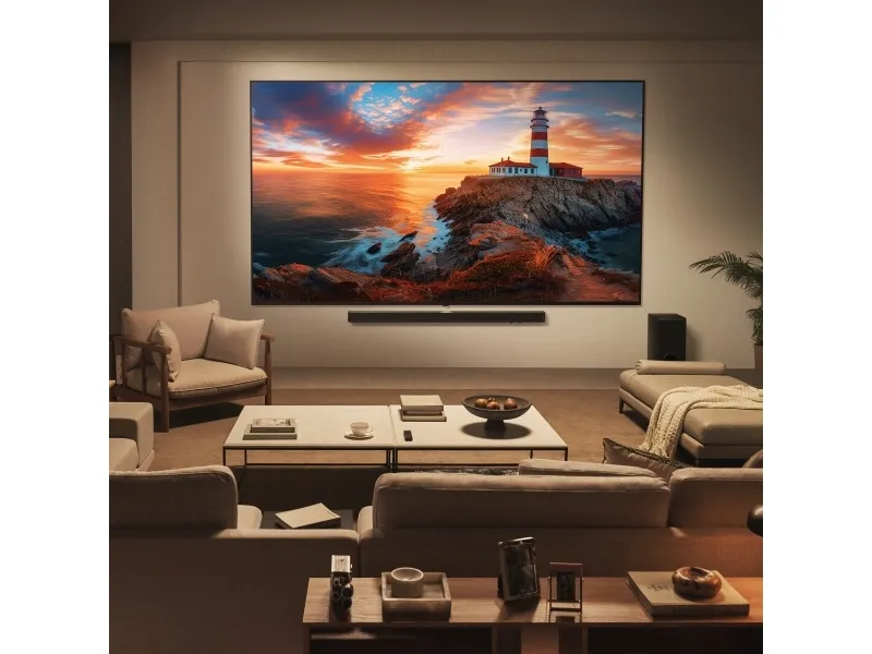 Freesync, 4K High Frame Rate (HFR), støtte for Apple AirPlay 2, smarttelefon fjernstyrt, AI Brightness Control, AI Genre Selection, Quick Access, Always Ready, Game Dashboard, AI Picture Wizard, Støtte for USB-nettkamera, AI Chatbot, Voice ID, AI Søk, AI Sound Wizard