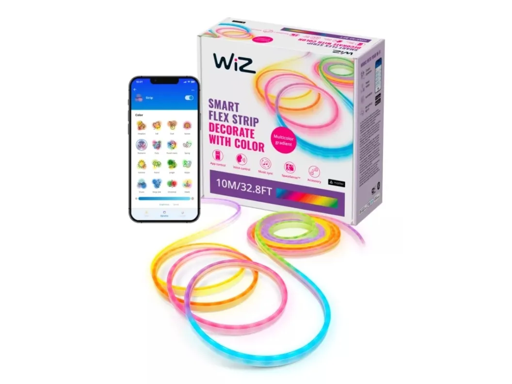 WiZ 929004126301. Type: Wall strip light, Suitable for light type: Ambience, Suitable location: Bedroom, Living room. Bulb type: LED, Total power: 45 W, Bulb lifetime: 15000 h. Input voltage: 220-240 V. Length: 10000 mm, Width: 6 mm, Thickness: 1.3 cm. Package width: 237 mm, Package depth: 237 mm, Package height: 93 mm