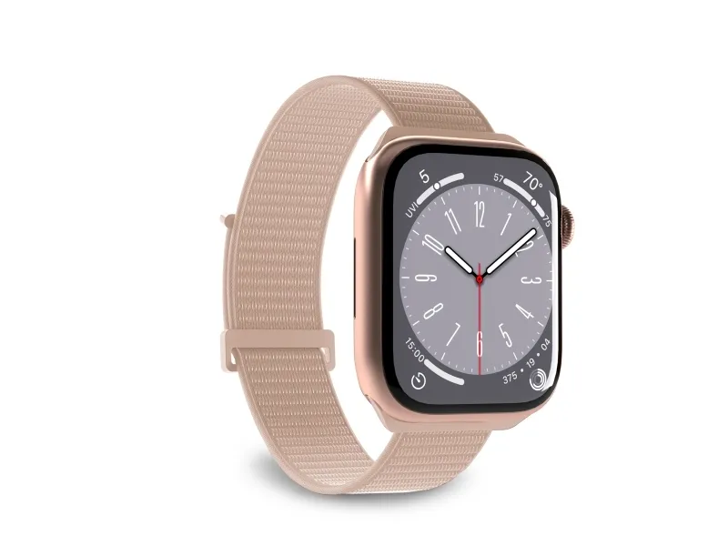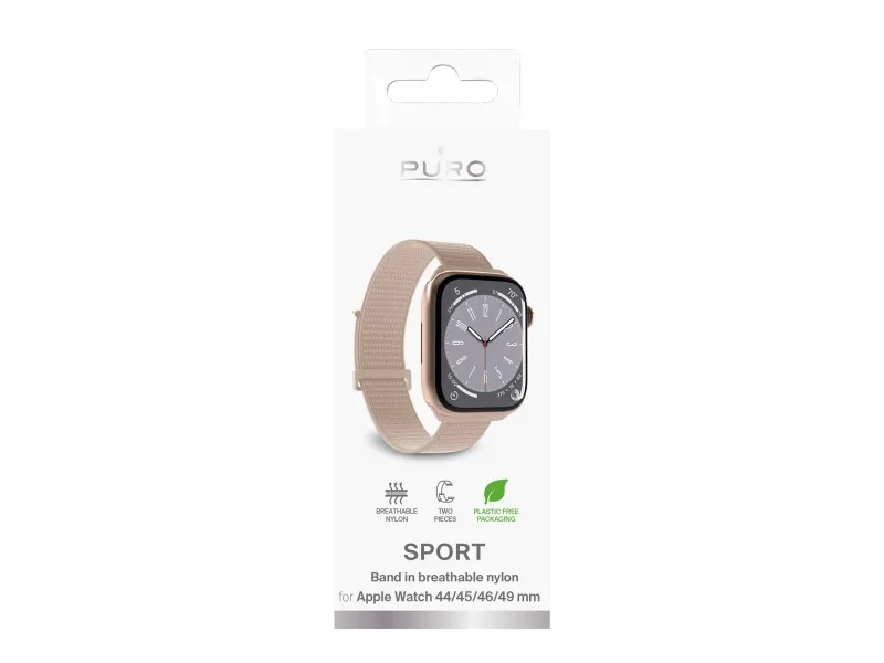 Denne Puro-erstatningsrem til Apple Watch er fremstillet af blødt, vaskbart og åndbart nylonstof og er velegnet til sport. Remlukningen sikrer en perfekt stabilitet og pasform på håndleddet. Kompatibel med alle tilgængelige serier, inklusive SE-, 8- og Ultra-serierne.