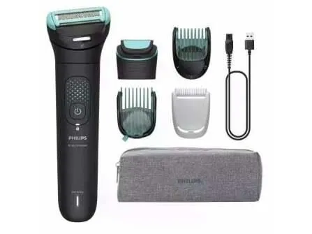 Philips Bodygroom Series 7000 BG7470 er designet for en enkel og effektiv barberingsopplevelse. Denne trimmeren tilbyr allsidig funksjonalitet for både tørr og våt bruk, noe som gjør den ideell for ulike barberingsrutiner. Med et fullt vaskbart design og en rekke medfølgende tilbehør for personlig pleie, er det enkelt å vedlikeholde enheten.