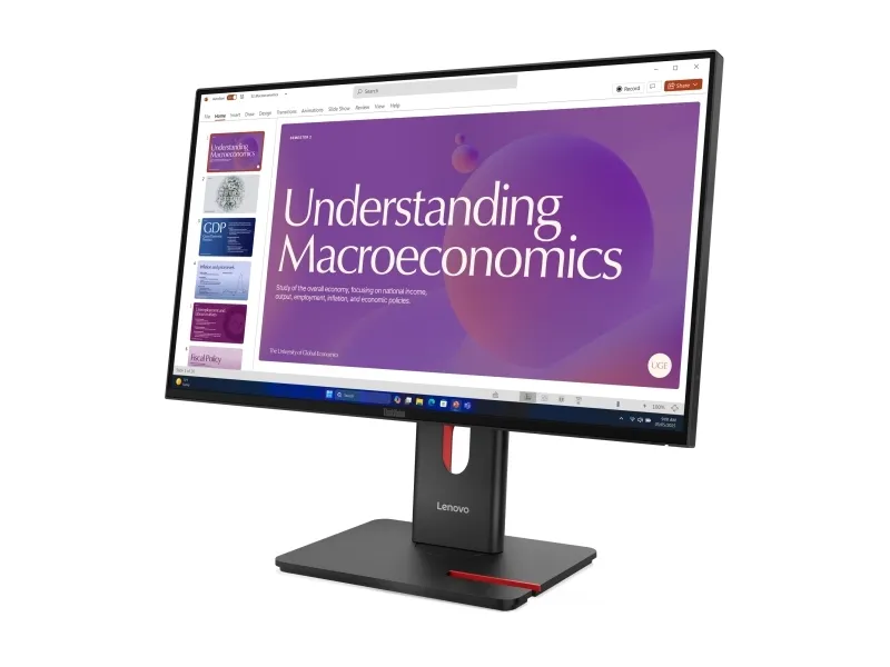 Integrert kabelstyring, High Bit Rate 2 (HBR2), 8-biters (6-biters + FRC) Color Depth, Smart Power-teknologi, Natural Low Blue Light-teknologi, 2 mm ramme (topp/side), 10.5 mm-fas (nederst), Lenovo display fleet manager (LDFM)