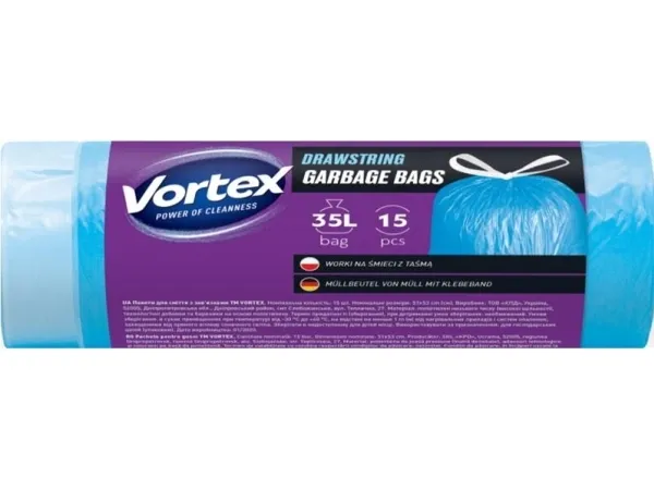 Poser Søppel Vortexdrawstr Blu 35L 15Stk