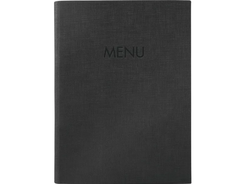 Sigel SM203 spisekort-mappe - 1 stk. - inkl. 2 dobbelt-transparentlommer til 8 sider - gummibinding - A5 - sort Man siger inden for gastronomien: Øjnene spiser med! Med denne spisekortmappe bliver spejernstilbud og drikkevarer præsenteret på en attraktiv måde. Den kan anvendes universelt og har en lang levetid takket være det slidstærke omslag af PU-plast i høj kvalitet (uden blødgørere). Derudover perfekt til daglig brug, da den er let at rengøre, samt robust over for slitage, ridser og slid. Inkl. Transparente lommer til 8 sider (yderligere omslag til udvidelse fås i Sigel sortimentet til genkøb). Praktisk: Sider kan hurtigt og nemt udskiftes.