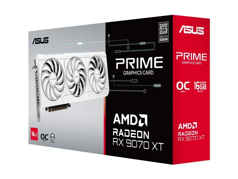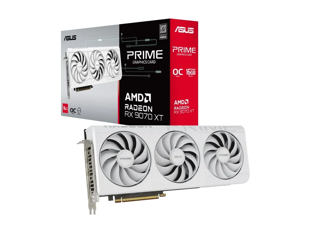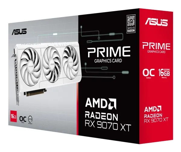 ASUS PRIME - OC Edition - grafikkort - Radeon RX 9070 XT - 16 GB GDDR6 - PCI Express 5.0 - 3 x DisplayPort, HDMI - hvit - boks
