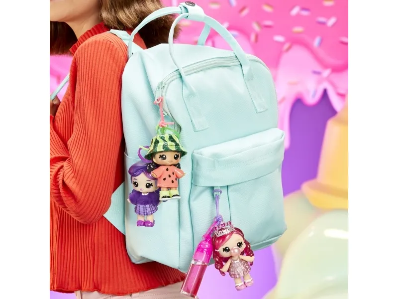 Welcome to Yummiland, where six brave Yummis team up to protect their incredible, edible city with their lip gloss superpowers! Join them on their adventures by creating and customizing your own real lip gloss! Each includes base, color and scent to mix together your very own shimmery gloss! Take your Yummi doll and lip gloss on the go by attaching the included key chain. These scented dolls are articulated and feature removable fashions and accessories so you can customize!