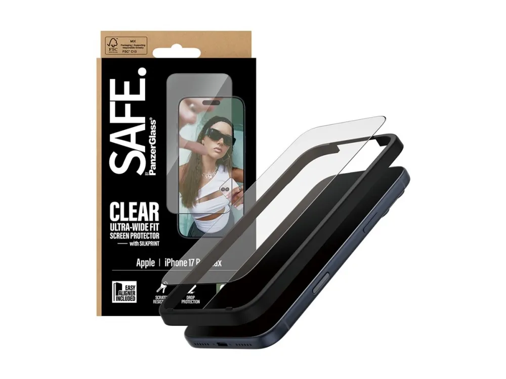 SAFE. by PanzerGlass - Skjermbeskyttelse for mobiltelefon - with black frame, ultra-wide fit, with EasyAligner - glass - rammefarge svart - for Apple iPhone 17 Pro Max