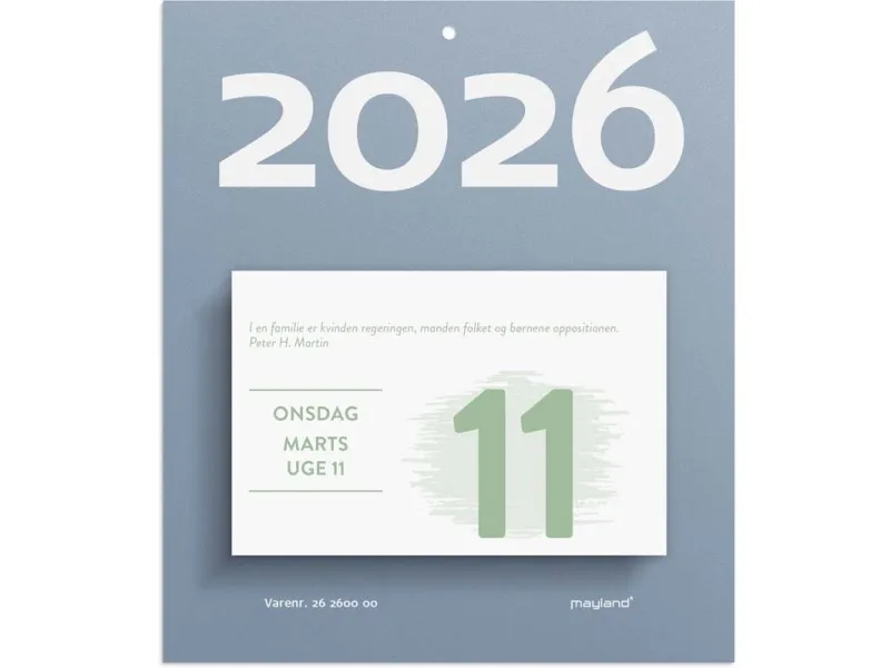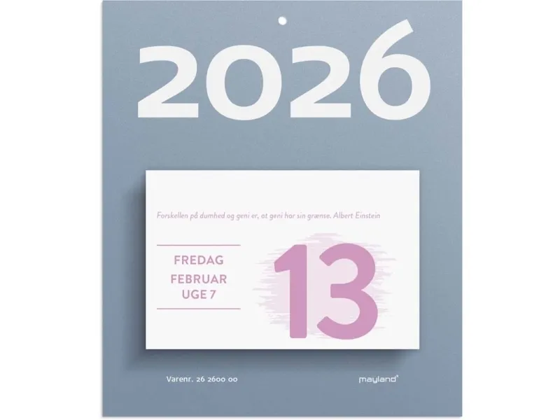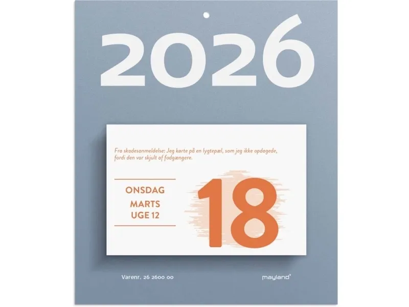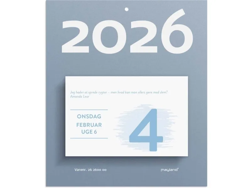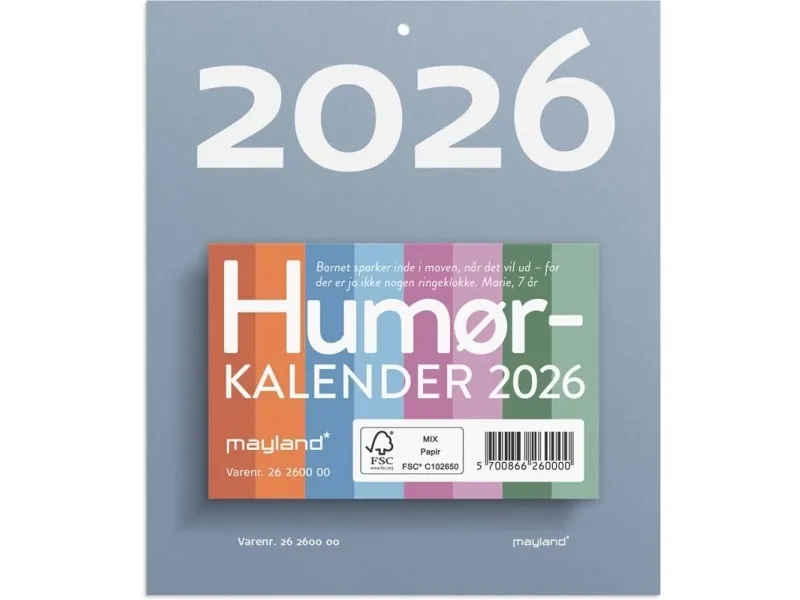 Sjov afrivningskalender til vægophæng. Den humoristiske kalender har et praktisk blokformat, hvor hver side nemt kan rives af blokken, når dagen er gået. Hver dag finder du en sjov vits eller morsomme og eftertænksomme citater, så du kan starte dagen med et smil på læben. Kalenderen har et enkelt og moderne design, hvor siderne skifter mellem 8 muntre farver.