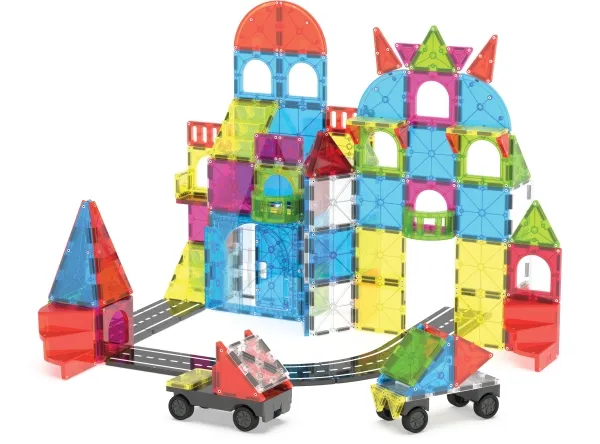 Byg din egen store magnetiske bymidte med veje, biler og bygninger. Slip fantasien løs med MAGNA-TILES by-legesæt med 110 dele. Fra 3+ år.
