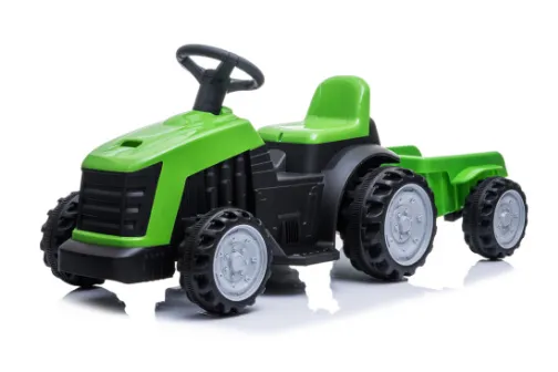 Gear: 1 x fremad og 1 bakgear Topfart: 2.5-3 KM/t Batteri: 1x7.4V3000mAh lithium. Oplader 8V Opladningstid: 4-6 timer Køretid: 1-2 timer Motor: 22W*1 Funktioner: Fremad- og bakfunktion, med trailer Samlet størrelse: B: 108 x D: 40 x H: 43 CM Vægt: 5,6 KG Anbefalet alder: 2-6 år Farve: grøn Certificeringer: EMC/EN71/EN62115/RoHS Maks. brugervægt: 25 KG