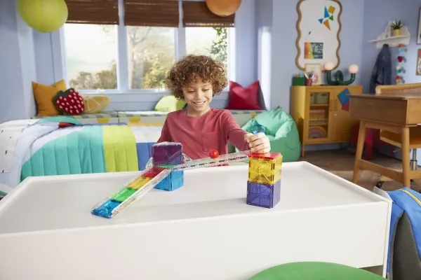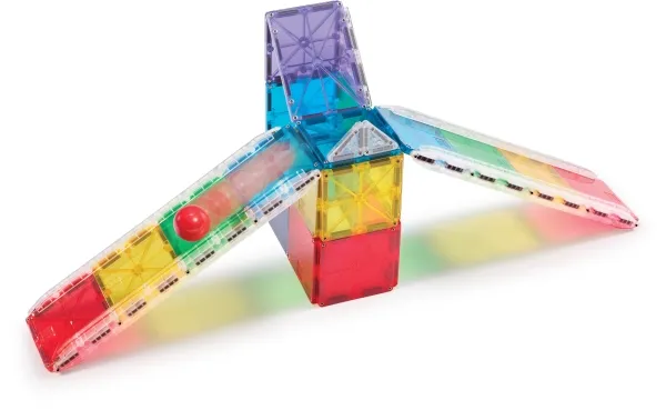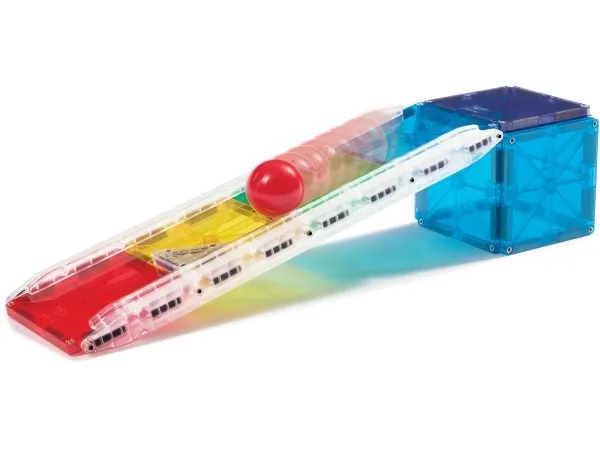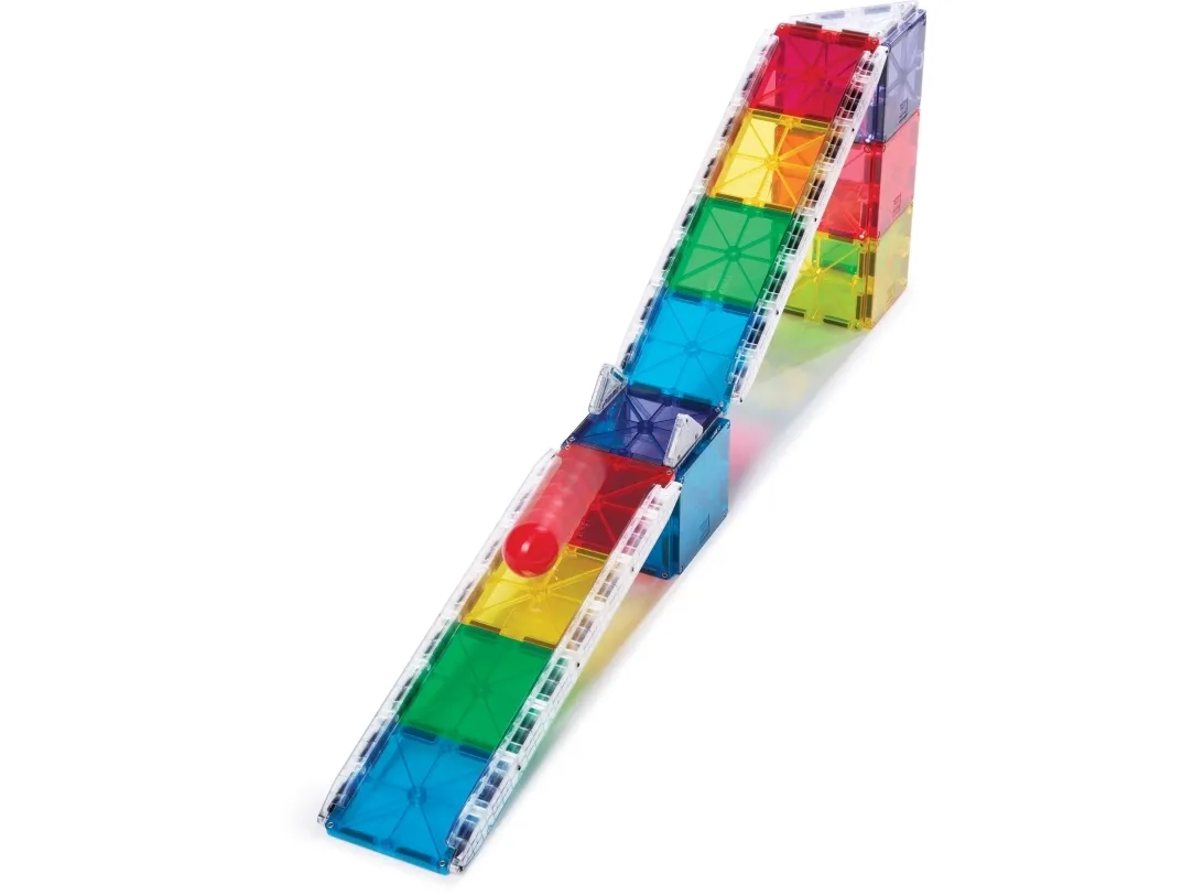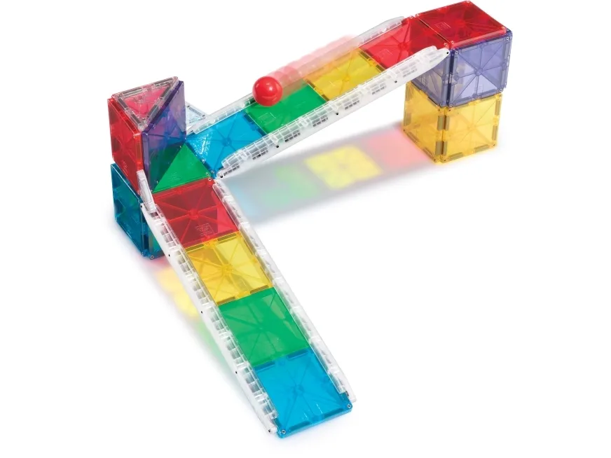Byg forskellige udfordrende magnetiske kuglebaner med MAGNA-TILES. Inkl. MicroMAGS, kugle og baneskinner. Fra 3+ år.