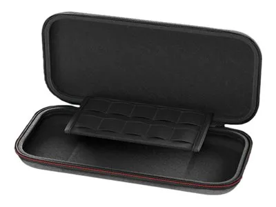 Gamepads • Struktureret beskyttelse: Formet indvendigt rum med blødt stoffor • Plads til spil: Sikker plads til op til 10 softwaretyper* • Integreret standerfod: Klap den praktiske fod op og nyd bordtilstanden helt afslappet. • Polstret skærmbeskyttelse: Foden er samtidig en polstret skærmbeskyttelse, når enheden er i etuiet. • Kompatibilitet: Passer til Nintendo Nintendo Switch™ 2 • Officielt licenseret: Testet for kompatibilitet af Nintendo Nintendo