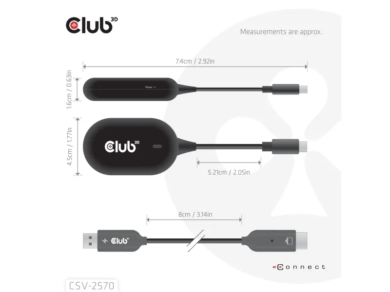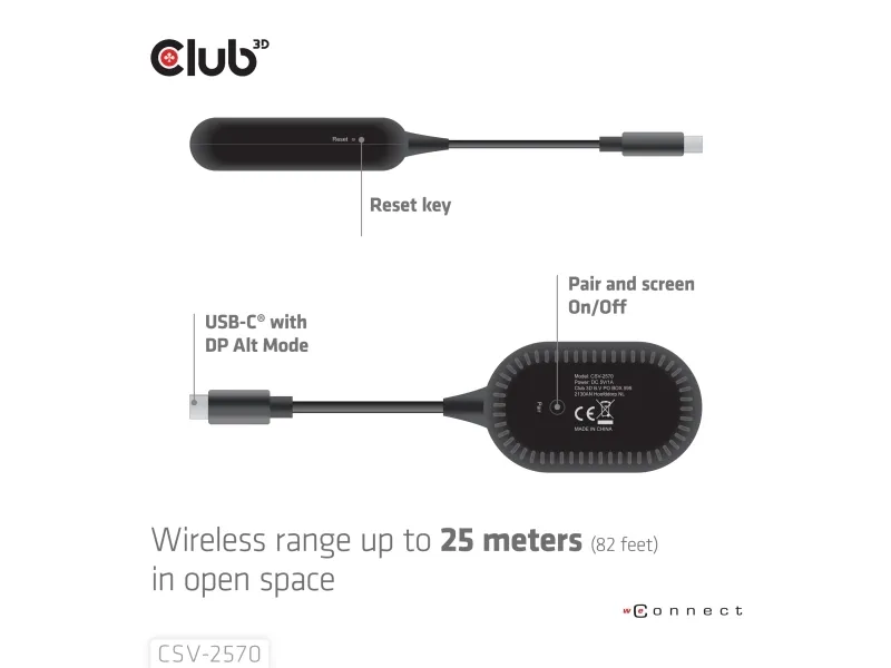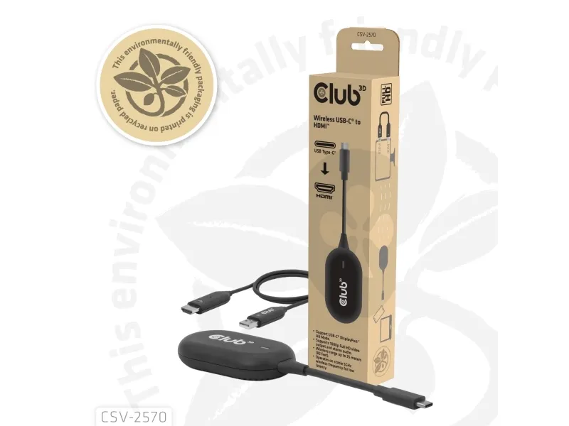 Club 3D - Sender og mottaker - trådløs video/lyd-utvider - HDMI, USB-C - opp til 25 m