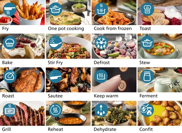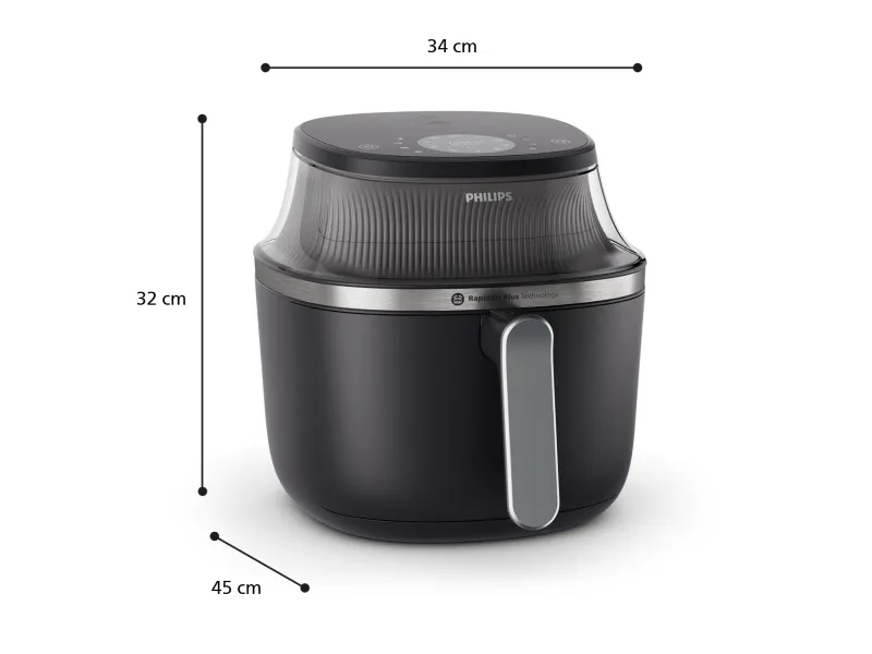 See the sizzle, taste the variety Go beyond airfrying with 16 functions from speedy baking to long hours of one-pot cooking. Delicious, full homemade meals are just a few easy steps away, with a stylish window designed to see when it’s all done to crispy, tender perfection.Philips 3000 series NA341/00. Product type: Hot air fryer, Capacity: 7.2 L, Fryer food capacity: 1.4 kg. Construction type: Single, Control type: Touch, Appliance placement: Stand-alone. Power: 2000 W, AC input voltage: 220-240 V, AC input frequency: 50 Hz. Width: 333 mm, Depth: 453 mm, Height: 303.5 mm. Package width: 406 mm, Package depth: 406 mm, Package height: 406 mm