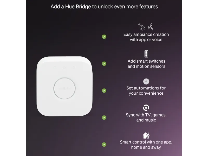 Philips Hue White and Color Ambiance Essential-lyspæren tilbyr allsidighet og lysstyrke for alle omgivelser. Den har et bredt fargetemperaturområde fra 2200 K til 6500 K, slik at brukerne kan tilpasse belysningen etter humør eller aktiviteter. Med en fargegjengivelsesindeks på 80 gir denne pæren levende farger som forbedrer rommenes visuelle utseende. Kompatibilitet med smarte hjemmesystemer som Google Assistant, Alexa og Apple HomeKit muliggjør sømløs integrering og stemmestyring, noe som gir bekvemmelighet og brukervennlighet. Pæren er designet for å fungere effektivt i et bredt temperaturområde fra -20 °C til 45 °C, noe som sikrer pålitelig ytelse. Den dimbare funksjonen gjør det mulig å finjustere lysstyrken, noe som gjør den ideell for å skape den perfekte stemningen til enhver tid.