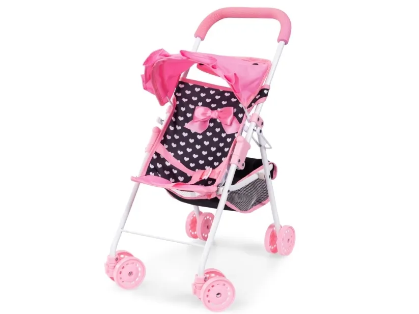 Denne skønne paraplyklapvogn til dukker passer til dukker op til 40 cm (16 tommer). Den har et smukt design og er særlig nem at køre takket være de dobbelte hjul, herunder de drejelige forhjul. Solskærmen beskytter dukkens ansigt mod solen. Takket være den integrerede sele er dukken sikret mod at falde ud. Den integrerede kurv giver mulighed for at tage mere legetøj med. Paraplyklapvogn kan foldes sammen til transport eller opbevaring på få sekunder. Klapvognen kan foldes sammen til transport eller opbevaring Håndtagshøjde: 51 cm Strørrelse: 43 x 26 x 51 cm Alder: Fra 3 år Bayer Design er producent af dukker, dukkevogne og dukketilbehør som har bragt glæde og underholdning til generationer af børn med deres produkter af høj kvalitet. Deres dybe passion for det, de gør, kommer til udtryk i deres engagement i fremragende håndværk og upåklagelig kvalitet. Bayer Designs hovedkontor ligger i hjertet af Tyskland, hvor vi kan se tilbage på en lang tradition for dukkefremstilling. Hver eneste af deres dukker, barnevogne og dukketilbehør er fremstillet med største omhu og sans for detaljer, så de lever op til de høje kvalitetsstandarder, som kunderne forventer af os. Bayer har altid børnenes fantasi og glæde i tankerne. Bayer's mission er ikke bare at fremstille legetøj, men at skabe glæde, kreativitet og uforglemmelige barndomsminder. Hvis du er på udkig efter autentisk, holdbart og sikkert dukkelegetøj, er Bayer Design det oplagte valg.