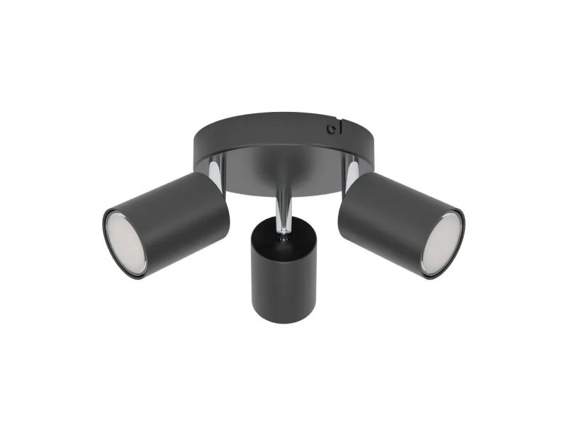 EGLO RECISO-E spotrondel i sort, 3L. Højde 8,5 cm, diameter 14 cm. GU10, max. 3 x 5 watt. Leveres ekskl. lyskilder. IP20. EGLO Reciso-E er en enkel og stilfuld spot rondel med tre spots, der passer perfekt ind i moderne indretning. Lampen er fremstillet i sort stål, og har tre bevægelige hoveder. Den diskrete, industrielle stil gør den velegnet til forskellige rum, herunder køkken, stue, soveværelse, gang eller spisestue. De drejelige lampehoveder giver dig mulighed for at indstille lyset præcist til den arbejdsfunktion, du har brug for. Spot rondellen har en højde på 8,5 cm, og en diameter på 14 cm. Reciso-E bruger tre lyskilder med G10-fatning (medfølger ikke). Vi anbefaler varenr. 110296, der giver et neutralt hvidt lys, som samtidig kan dæmpes. Lampen er klassificeret med IP20 for ekstra sikkerhed og holdbarhed. Reciso-E fås også som enkel spotlampe, og spotlampe med 2 lyskilder.