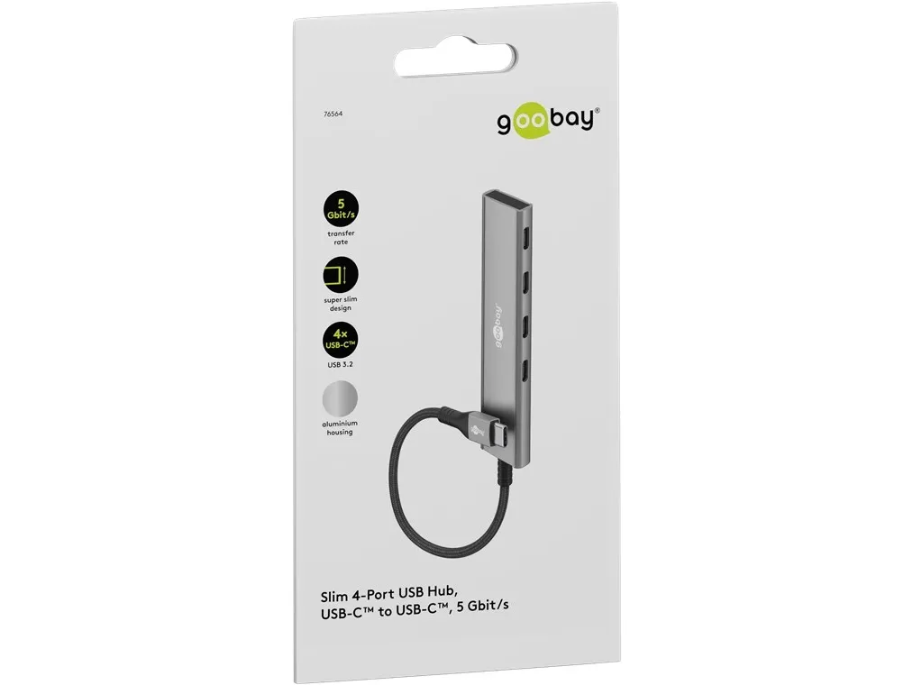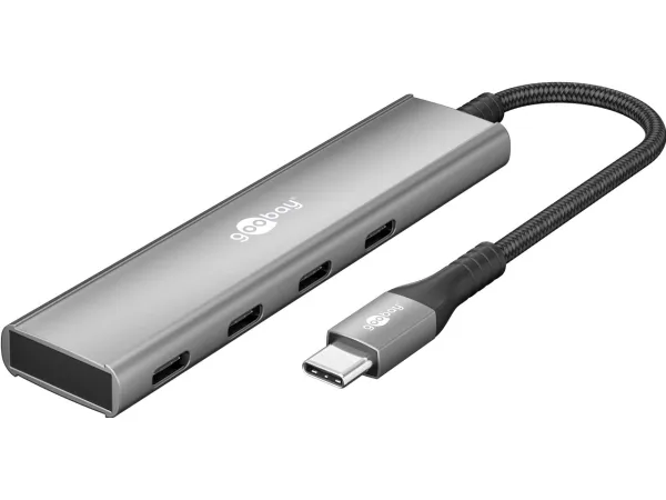 USB-C™-stik > 4x USB-C™-hunstik (USB 3.2) Den praktiske USB dock udvider en USB-C™-enhedsport til fire USB-C™-porte: En enkelt tablet- eller laptop-port kan således betjene op til fire perifere enheder Kompatibel med alle standard USB-enheder, f.eks. smartphones som iPhone 16 eller Samsung Galaxy, Apple MacBook, tastaturer, mus, webkameraer, harddiske (SSD, HDD) eller headsets – uden behov for at installere separate drivere USB-C™-adapteren understøtter SuperSpeed-datahastigheder på op til 5 Gbit/s – perfekt til overførsel af store filer som film, videoer eller ukomprimerede lydfiler I sit kompakte, slanke format passer denne USB-C™ hub i enhver taske og er en praktisk følgesvend på rejser og på farten Med et robust aluminiumshus af høj kvalitet, der giver en behagelig fornemmelse og fremragende holdbarhed USB-adapteren er kompatibel med SSD via NVMe, operativsystemer som Windows, macOS, Linux eller Android og bagudkompatibel med USB 3.0 og USB 2.0