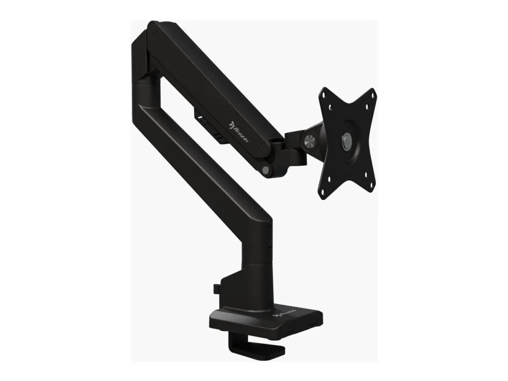 Gas spring arm for smooth, effortless adjustment. Available in multiple colors to match Arozzi desks and accessories. VESA 75x75 & 100x100 compatibility with quick-release plate. Max monitor weight: 9 kg. Tilt range: +45° / -45°. Swivel range: +90° / -90°. 360° screen rotation. 360° arm rotation with optional 180° lock screw. Adjustable gas spring tension. Removable VESA plates for easy installation. Integrated tool-free cable management. Mounting options: Grommet or C-clamp (both included).