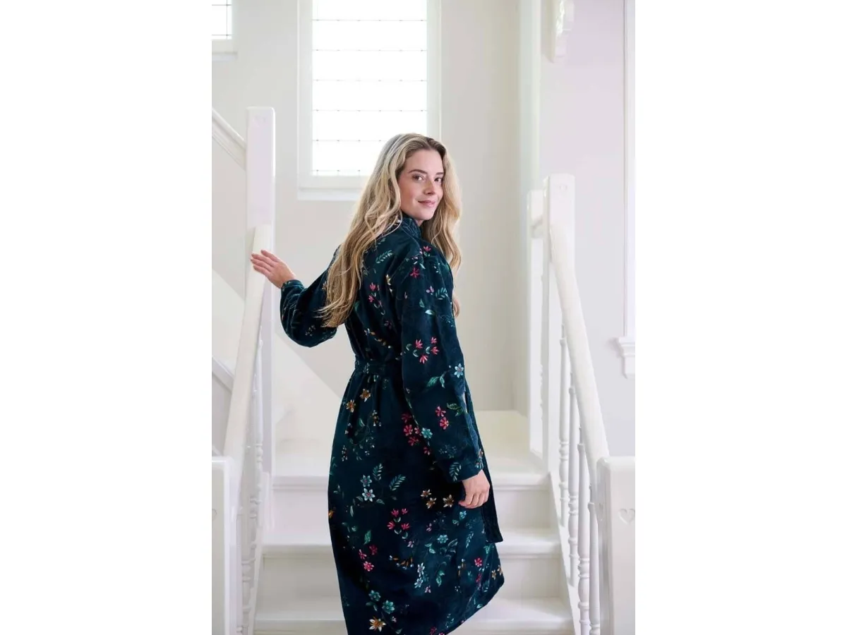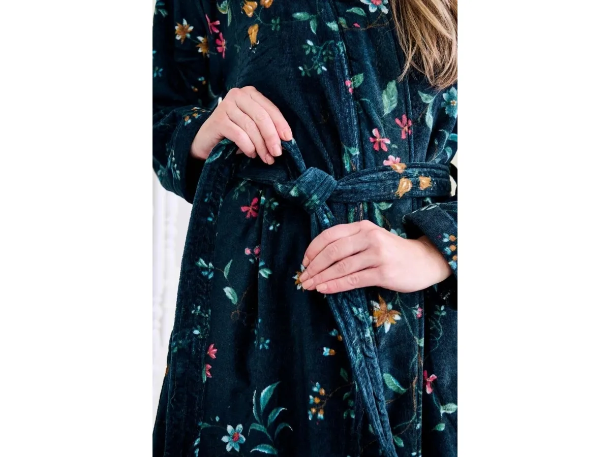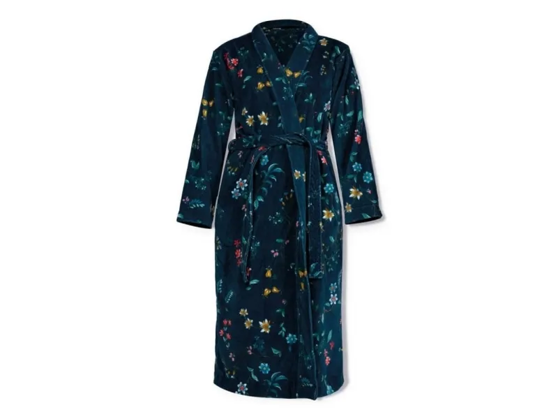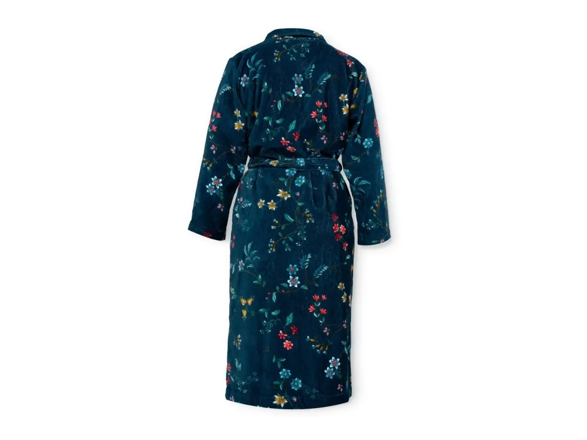 PIP Les Fleurs Bathrobe Dark Blue XL er en luksuriøs badekåbe fra Pip Studio. Den er lavet af 100% bomulds frotte og har en elegant mørkeblå farve. Den har et oversize design, så den er perfekt til at give dig en blød og dejlig komfort. Den kan vaskes i maskine ved 30° - 40° C og tørres ved lav temperatur. Denne badekåbe vil give dig en luksuriøs følelse, når du skal nyde et varmt karbad.