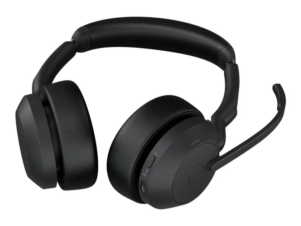 The Evolve2 55 are specifically designed to go with you everywhere. They fit your every need, giving you a high-quality calling and music listening experience with Advanced Active Noise Cancellation, noise-canceling microphones and custom 28mm speakers, plus a high level of comfort with revolutionary Jabra Air Comfort technology.