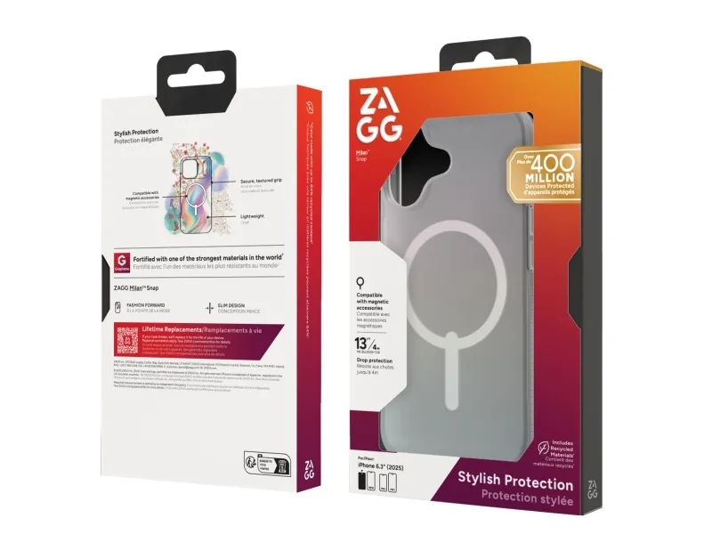 Inspired by nature's intricate hues and patterns, the iridescent Milan Snap takes city-worthy style and protection seriously. And it's more than just a pretty case. Milan Snap is engineered for durability and protects your phone from drops as high as 13 feet off the ground. You've invested in a top-of-the-line phone that makes a style statement. Now protect your prized device with its own statement piece. The Milan Snap's striking patterns and luminous tones suit its slim, lightweight design. Clean lines and subtly textured edges not only add visual interest-they help your phone stay put in your hand, slip-free. And naturally, since you and your phone are always on the move, the Milan Snap works with MagSafe and most wireless chargers. Wherever your day lands you, you brought the right look-and your phone is good to go.