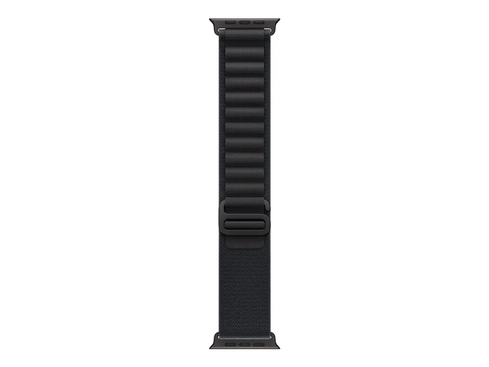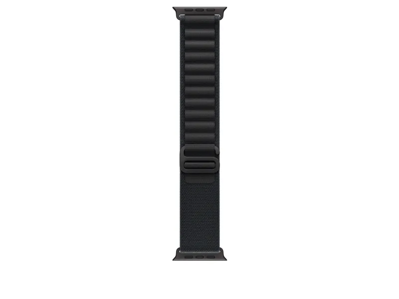 Apple Alpine Loop er designet for smartklokker og tilbyr en blanding av komfort og holdbarhet. Denne klokkeløkken er kompatibel med forskjellige størrelser på klokkehus, inkludert 44 mm, 45 mm, 46 mm og 49 mm, og passer dermed til flere modeller. Den er laget av 100 % resirkulert polyester og spandex, samt 90 % resirkulert titan, og er et miljøbevisst valg uten at det går på bekostning av styrke eller stil. Den svarte titanfinishen gir et elegant preg, mens de korrosjonsbestandige egenskapene sikrer at den tåler tidens tann.