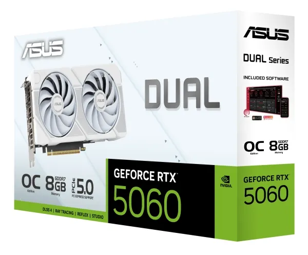 The ASUS Dual graphics card offers performance with support for up to 8 GB of video memory and a 128-bit bus width, making it suitable for demanding applications and gaming. With the capability to handle resolutions up to 7680 x 4320, this graphics card can drive multiple displays, supporting up to four monitors for an immersive visual experience. Built with NVIDIA technology, it incorporates features such as NVIDIA G-Sync compatibility and Ray Tracing Cores, ensuring fluid gameplay and impressive visuals. This card also boasts a Dual Fan Design with 0dB Technology, providing effective cooling while maintaining quiet operation during lighter tasks. Complemented by the AUTO-EXTREME technology, the graphics card ensures reliable performance and longevity.