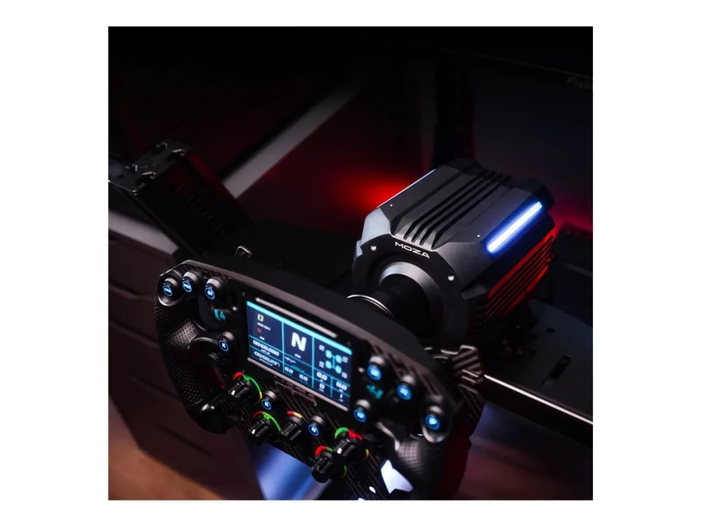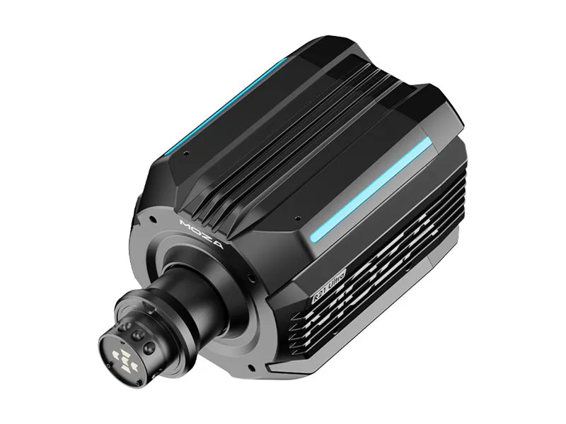 The Moza Racing R21 Ultra wheelbase offers an immersive racing experience with its direct drive technology, providing responsive and realistic force feedback. This wired input device connects via USB, ensuring compatibility with PC game consoles. The aluminum design enhances durability and features RGB LED lighting for an eye-catching aesthetic that complements any racing setup.