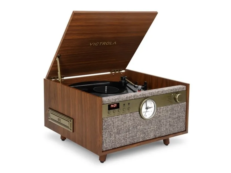 The Century Signature 6-in-1 Wood Record Player Mid-Century Elegance The Victrola Century Signature Bluetooth® record player brings elegant mid-century design to the all-in-one music center.