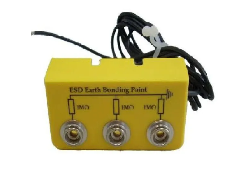 Jordingsterminal med dim. 110x37x16,5 mm tilpasset så det kræver minimal plads. Kan monteres under arbejdsstationens bordplade. Sort tilslutningskabel, længde 3 meter og ringkabelsko medfølger.