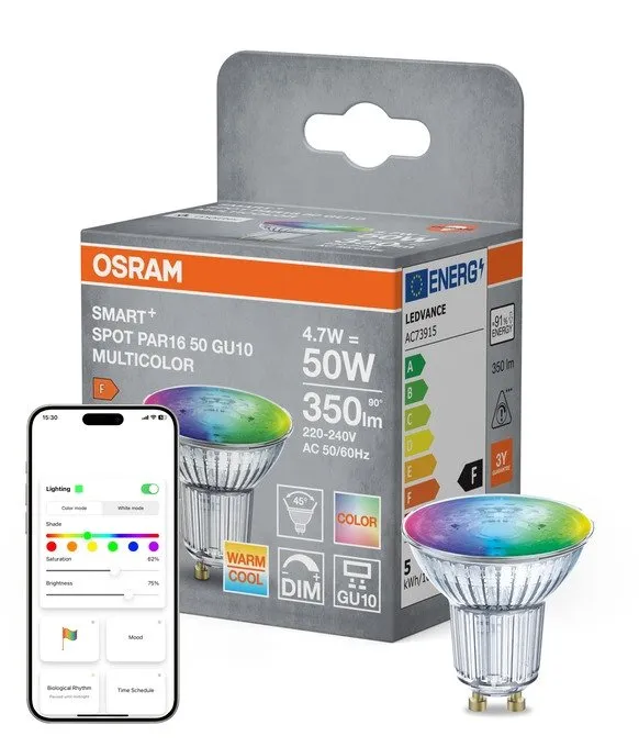 LEDVANCE SMART+ Matter over WiFi LED-pærer er en del af sortimentet fra LEDVANCE til moderne og intelligent Smart Home belysning. Med LEDVANCE SMART+ får du pærer og lamper, der om morgenen kan give bløde farver, i løbet af dagen skabe et lys, der understøtter koncentration og arbejdsevne og om aftenen skabe en hyggelig eller festlig stemning. Du får belysning skræddersyet til dine behov. Du kan også dæmpe belysningen via app’en helt ned til 10% af lysstyrken uden at gøre brug af en ekstern lysdæmper. Hvis børnene ønsker et værelse i fx lilla, grønne eller gule farver, så kan du give børneværelset en makeover uden at svinge malerpenslen. SMART+ er til hele familien – både de store og små. Med de intelligente pærer får du mere komfort i hverdagen. Du behøver ikke længere at bøvle med at finde kontakten for at tænde lyset, når du kommer hjem efter en lang dag med favnen fuld af dagligvarer. Hvis hænderne er fulde, kan du blot bruge din stemme og bede Google Assistant, eller Amazon Alexa om at tænde for lyset. SMART+ Multicolor (RGBW) giver mulighed for farveindstilling med over 16 mio. selvvalgte farver eller rent hvidt lys. Lyset kan også dæmpes. SMART+ LED-pærer fås i mange former og størrelser. LED-teknologien sikrer dig et højt lysudbytte med lavt strømforbrug og meget lang levetid. LEDVANCE SMART+ sortimentet er bredt og indeholder blandt andet LED-pærer, LED-lamper, flexbånd, sensorer og plugs. Du kan få produkter til indendørs brug og produkter som kan tåle at sidde udendørs. Hvis du vælger at bruge vores plugs så kan du også få ”ikke smart home” produkter integreret i din smart belysning – fx kaffemaskinen eller andre lamper uden smart pærer. SMART+ produkterne kan nemt sættes op og styres via LEDVANCE SMART+ app (IOS 9.0 og Android 4.4 eller senere). App’en giver mulighed for at opsætte og gemme dine egne forskellige lysscener, tidsstyringer og andre automatiseringer – det er nemt og kun fantasien sætter grænser. SMART+ Matter over WiFi kræver ingen gateway, men kommunikerer nemt via din trådløse WiFi-router og systemet kan stemmestyres via Google Assistant, Amazon Alexa og Apple Homekit. Du kan også styre SMART+ WiFi produkterne uden for hjemmet via din smartphone eller tablet. BEMÆRK – MATTER lyskilderne kan IKKE styres via WiFi fjernbetjeningen.
