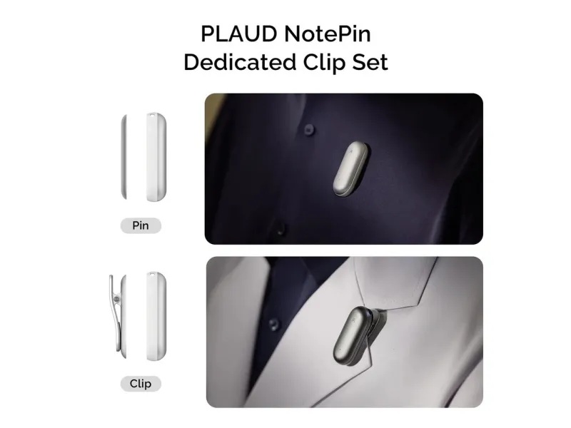 Make every conversation and recording truly hands-free. The PLAUD NotePin Clip and Magnetic Pin delivers a powerful discreet hold that keeps your device securely in place while you move through meetings classes commutes and busy days. Ultra-thin featherlight and easy to wear it?s comfort and confidence you can pin on and forget.Powerful magnetic holdUltra-thin lightweight designTwo wearing modes for any scenarioSecure hands-free use on the moveComfortable and discreet all dayPowerful magnetic hold An advanced magnetic mounting system delivers a strong reliable grip on clothing. Your NotePin stays put exactly where you want it giving you steady hands-free performance without fussing slipping or readjusting. Ultra-thin lightweight design Slim and featherlight the NotePin Clip and Magnetic Pin won?t weigh you down or pull on fabric. Its low-profile build preserves the look of your outfit while ensuring comfortable wear from morning to night. Two wearing modes for any scenario Choose the magnetic clip for quick on and off convenience or switch to the safety pin when you need extra security during active use. It?s a flexible setup that adapts to your day. Secure hands-free use on the move Whether you?re walking between meetings or navigating a busy campus the strong hold keeps your NotePin stable and effective. Enjoy true hands-free freedom without compromising stability. Comfortable and discreet all day Designed to blend in the NotePin is discreet enough for formal settings and comfortable enough for long sessions. Ideal for meetings lectures interviews and daily commutes. Package includes:1 clip - Cosmic Grey1 magnetic pinProduct specificationsColour: Cosmic GreyClip size: 48 x 18 x 9.7 mm: Clip weight: 6.5 gPin size: 48 x 17 x 3.0 mm: Pin weight: 6.2 g