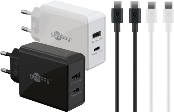 1x USB-C™-port (Power Delivery) og 1x USB-A-port pr. oplader, 2x USB-C™-stik pr. kabel Med en effekt på 30 W er opladerne skræddersyet til små enheder som smartphones, Bluetooth-hovedtelefoner, tablets eller powerbanks Med Power Delivery har USB-laderne en særlig sikker og dynamisk opladningsmetode, der bestemmer den optimale udgangseffekt for den tilsluttede enhed USB-C™-opladernes integrerede beskyttelseselektronik beskytter tilsluttede enheder mod overstrøm, overopladning og overophedning USB-C™-opladerkablerne muliggør opladning med op til 60 W (20 V/3 A) og højhastighedsdataoverførsler på op til 480 Mbit/s (USB 2.0) USB-kablerne er 1 m lange og perfekte til kontoret, bilen eller hjemmet – bekvem opladning uden kabelrod Opladerne og kablerne er kompatible med smartphone-mærker som Apple iPhone, Samsung, Xiaomi, LG, Huawei samt tablets som Apple iPad eller Samsung Galaxy