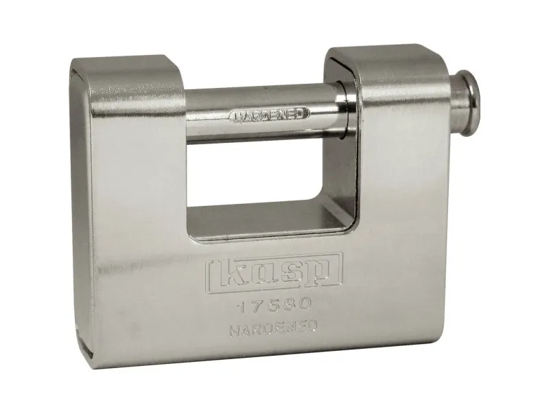 Panserhængelås, 80 mm Låse leveres med 2 nøgler Hærdet stålbøjle - særlig beskyttelse mod saveforsøg og aftrækkerforsøg Robust messinglegeme med ståkappe Låsecylinder med 5 brudsikre, svampeformede stifter Låsemekanisme med dobbelt sikring - særligt fordrejet og trækfast Paracentrisk nøgleprofil – ekstra beskyttelse mod manipulation Nøglehul med udboringsbeskyttelse