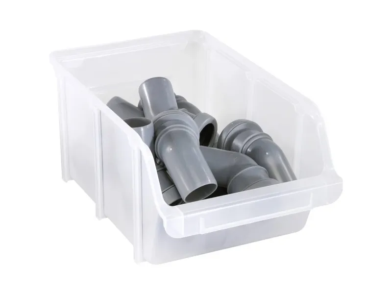 Overskuelig opbevaring af smådele med direkte adgang Raaco-opbevaringskasser: Rummelig, stabil og let tilgængelig. Hvis du mangler rummelig og alligevel pladsbesparende opbevaringsmulighed til dine smådele, er Raaco Benin den helt rigtige løsning for dig. De åbne lagerkasser giver dig hurtigt overblik og direkte adgang til indholdet, effektivt arbejde bliver dermed lettere. Benene fås i forskellige størrelser og er udformet med den skrå forvæg således, at indholdet nemt kan nås selv i de mindste bokse. Opbevaringskasserne kan stables, størrelserne 1 + 2 passer i bredden til hinanden, også størrelserne 3 + 4. Alle bokse er udstyret med et greb og en omløbende stabelkant. Fremstillet af robust polypropylen (PP), der også er resistent over for de fleste syrer og kemikalier. Størrelserne 1 - 4 kan hænges på en vægskinne, der fås som tilbehør.