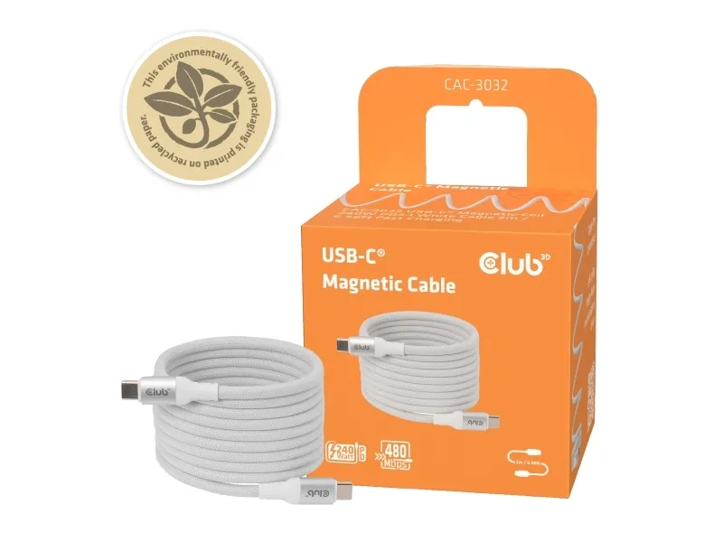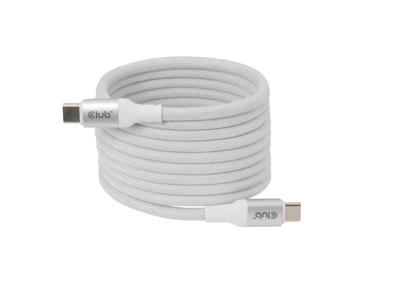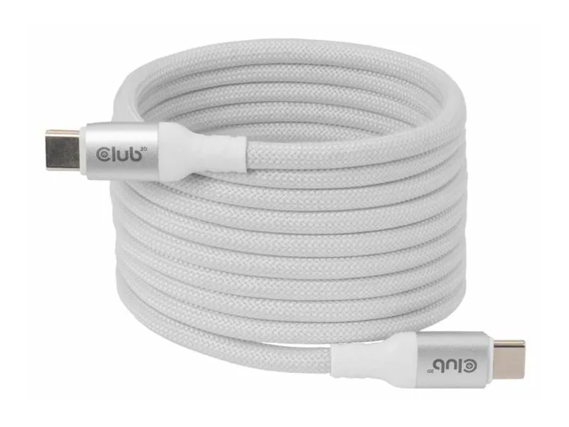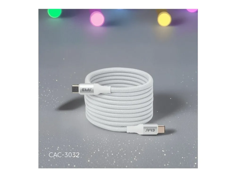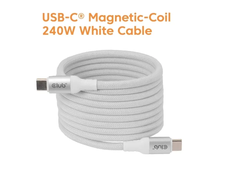 Club 3D - USB-kabel - 24 pin USB-C (hann) til 24 pin USB-C (hann) - USB 2.0 - 48 V - 5 A - 2 m - rullet sammen, USB Power Delivery (240 W), støtte for Power Delivery 3,1, magnetisk - hvit
