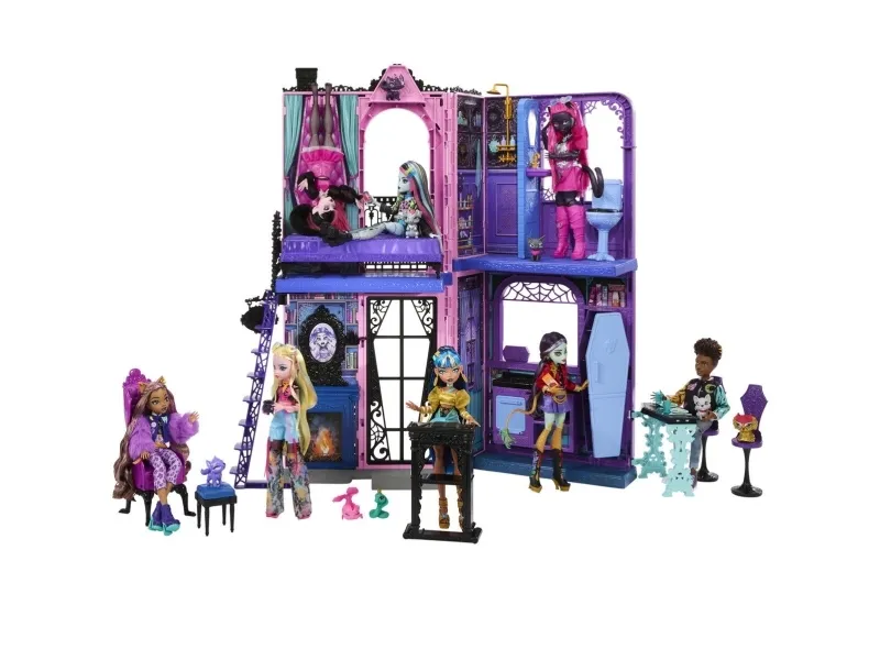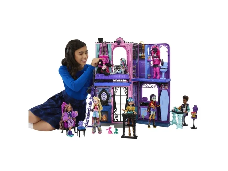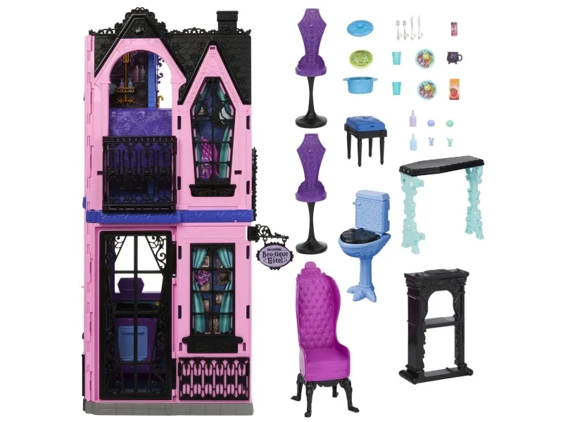 Monster High Buh-tique Hotel dukkehus med skumle overraskelser i hvert rom og mer enn 13 tilbehør