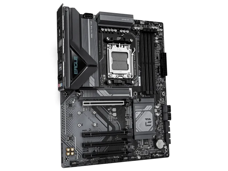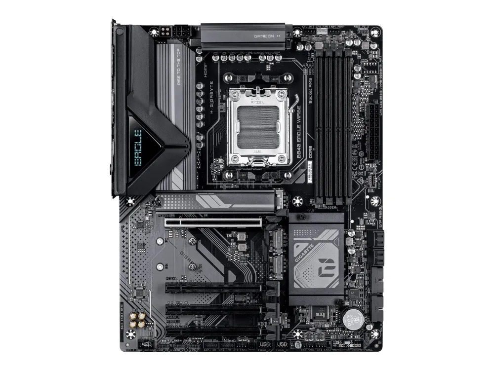 The GIGABYTE B840 EAGLE WIFI6E motherboard is designed to enhance the performance of your system. Featuring support for AMD Ryzen 7000, 8000, and 9000 Series processors, this motherboard accommodates high speeds of DDR5 SDRAM up to 8200 MT/s, providing responsiveness for all applications. With 4 DIMM slots available, it allows for dual-channel memory architecture and efficient multitasking capabilities, making it suitable for both gamers and professionals. In addition, the motherboard is equipped with multiple connectivity options, including USB 3.2 Gen 2 and USB-C 3.2 Gen 2 ports, ensuring fast access to peripherals. The 2.5 Gigabit Ethernet networking and support for Wi-Fi 6E deliver reliable high-speed Internet, allowing for seamless streaming and online gaming experiences. GIGABYTE Smart Fan 6 technology enhances thermal regulation, keeping your system cool under load. Overall, this motherboard presents a solid foundation for building a powerful and efficient computer system.