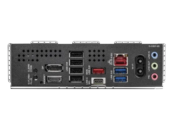 2 x USB 3.2 Gen 1 4 x USB 2.0 1 x lydutlinje - minijakk 1 x mikrofon - minijakk 1 x lydinnlinje - minijakk 2 x antenne 1 x LAN (2.5Gigabit Ethernet) 1 x USB 3.2 Gen 2 1 x HDMI 1 x DisplayPort 1 x USB-C 3.2 Gen 2