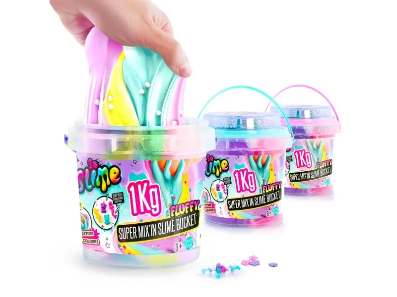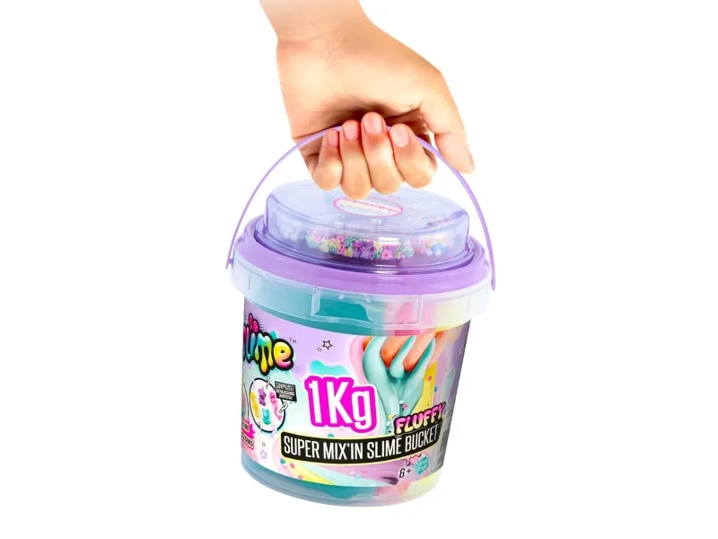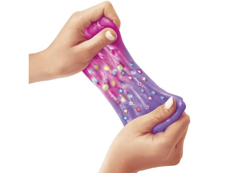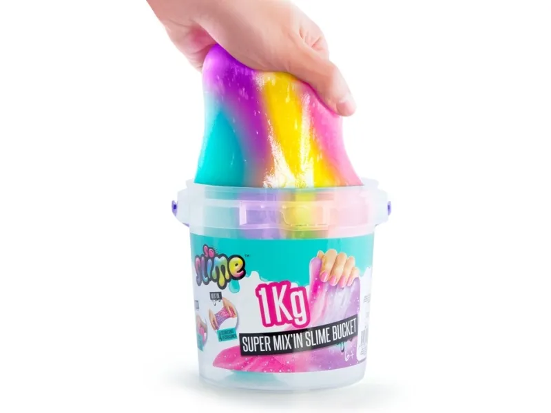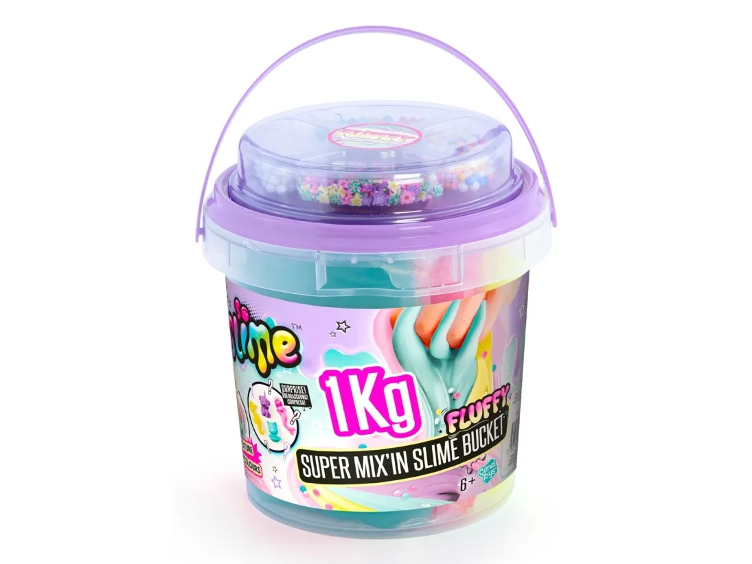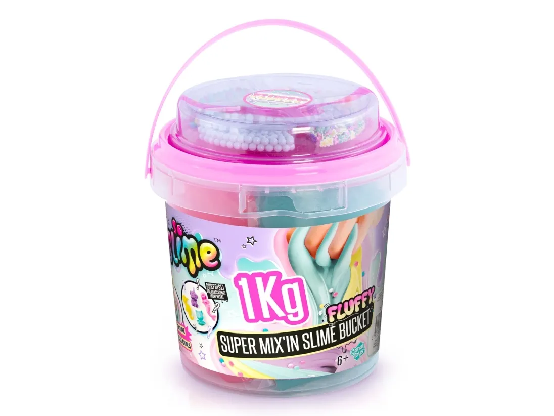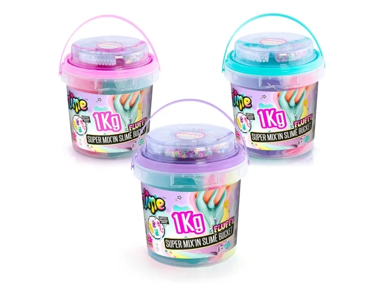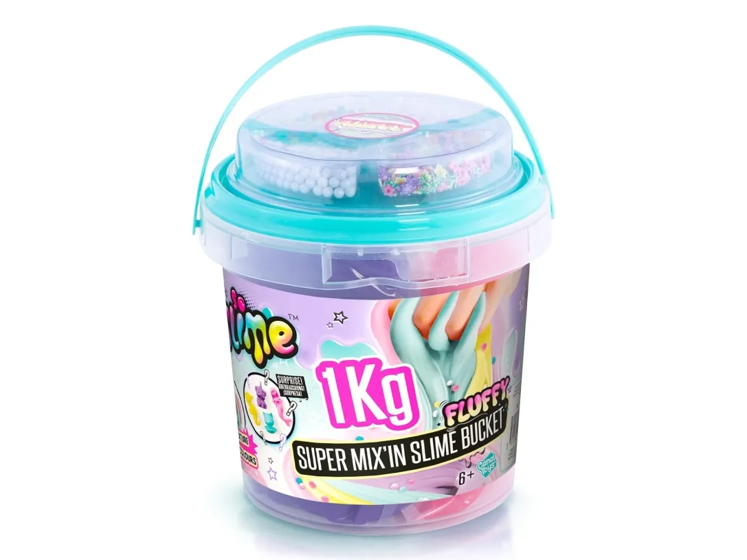 Klem på den gigantiske slimen din og legg til konfetti! Samle dem alle! Fra 6 år. Inneholder: - 1 bøtte - 4 x 250g poser med ferdiglaget slime - 4 poser med dekorasjon