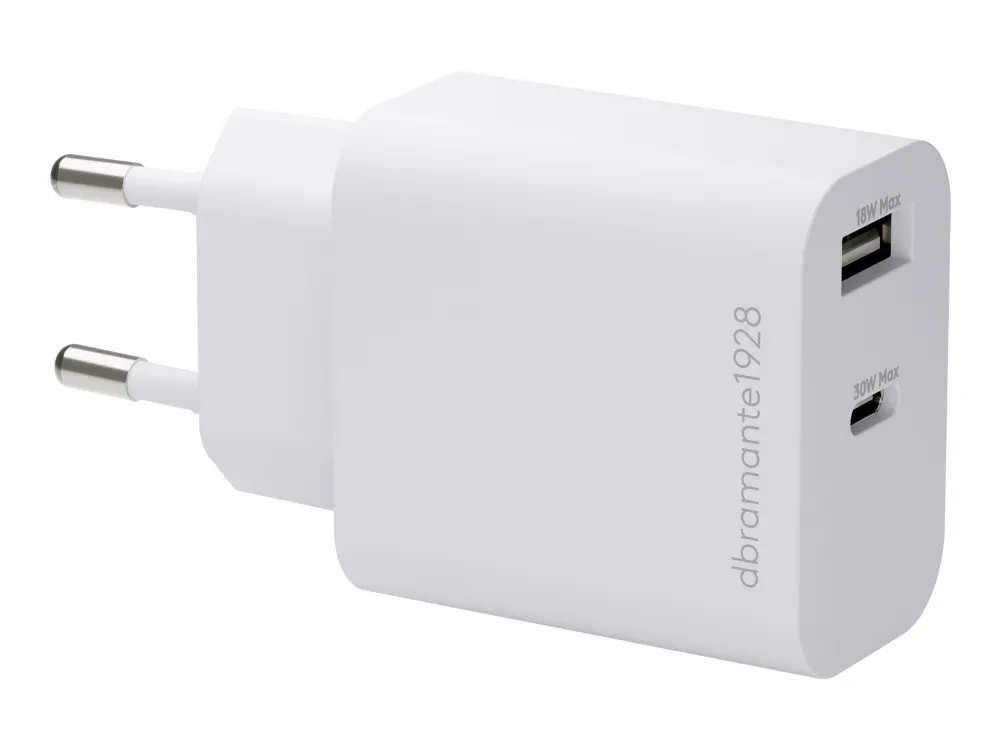 Dbramante1928-laderen er designet for å gi pålitelig og effektiv lading for ulike enheter. Med en maksimal effekt på 30 W er denne veggladeren kompatibel med et bredt spekter av spenninger, fra 3,3 V til 20 V, og tilfredsstiller ulike ladebehov. Laderen er laget med tanke på bærekraft og er produsert av 100 % resirkulert plast. Den oppfyller en rekke miljøstandarder, noe som gjør den til et ansvarlig valg for miljøbevisste brukere. Fast Charge Technology PD/PPS forbedrer ladeeffektiviteten, slik at enheter kan lades raskt uten at det går på bekostning av sikkerheten.